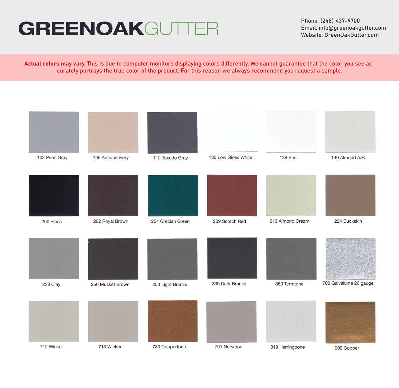 Here at Green Oak Gutter we install different sizes and styles of gutters in aluminum, copper, and galvalume. The gutters are rolled out to the lengths that are needed right at the location for a truly seamless gutter. Our corners are custom hand mitered with only (1) seam and not the prefab (3) seamed box miters.